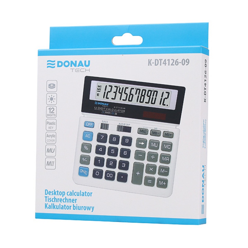 Kalkulator biurowy DONAU TECH, CI-SDC868L, 12-cyfr. wyświetlacz, wym. 155x152x28 mm, biały