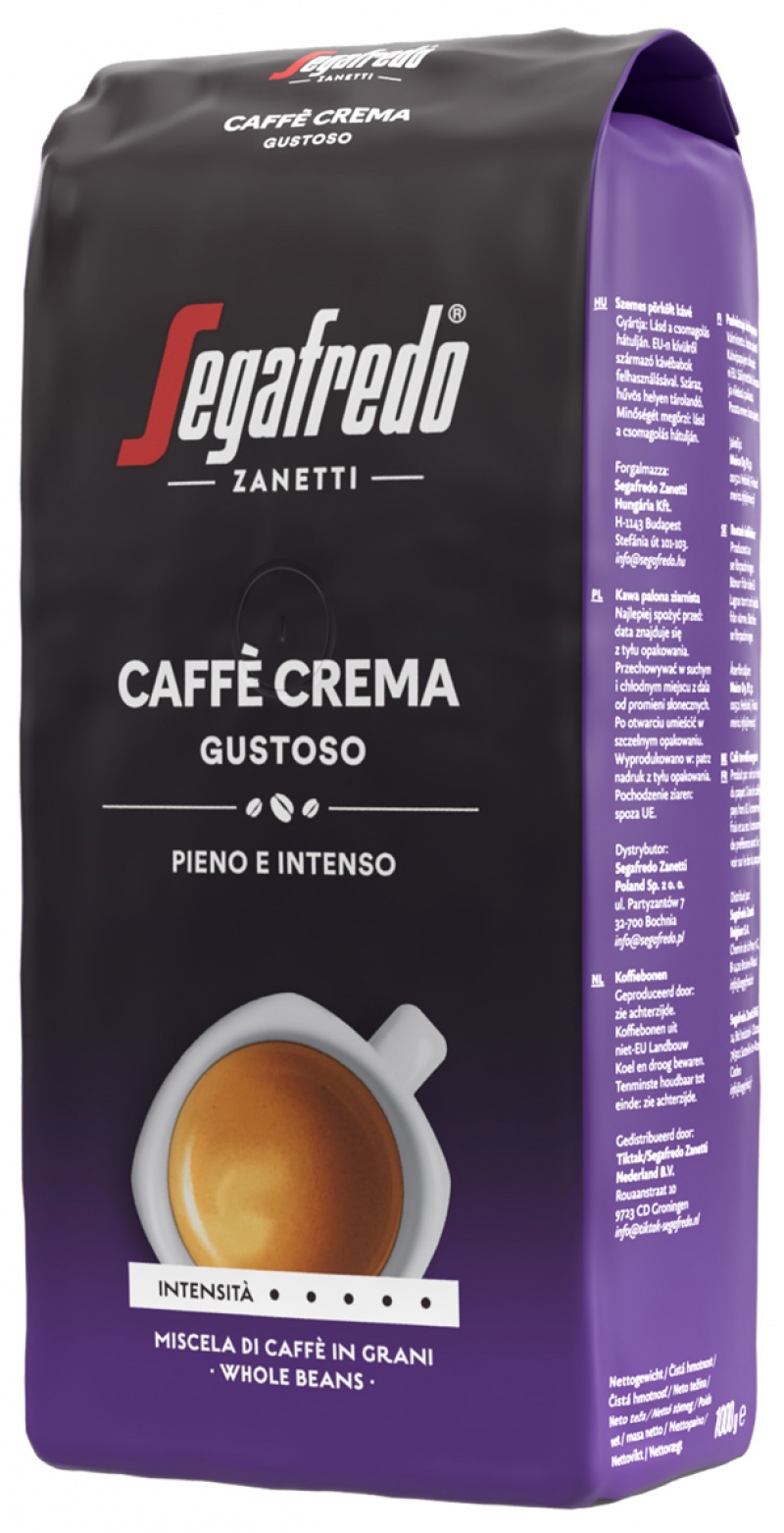 Segafredo Caffè Crema Gustoso to kawa ziarnista o pełnym i intensywnym smaku oraz gęstej cremie