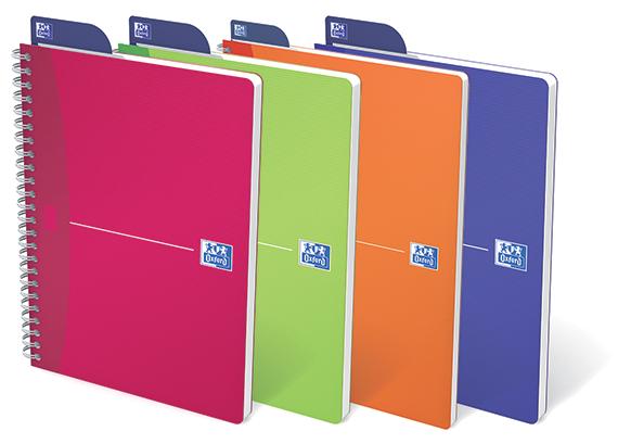 Biała podwójna spirala zapewnia. że notatnik leży perfekcyjnie płasko po otwarciu.Elastyczna. wodoodporna okładka z przejrzystego polipropylenu.