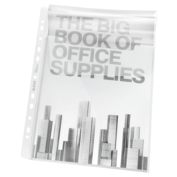 Koszulki z poszerzanym o 20 mm harmonijkowym brzegiem i ochronną klapką pozwalają na włożenie do środka obszernych dokumentów i katalogów. Perfekcyjnie nadają się do wpięcia do segregatorów. Kod 47523003