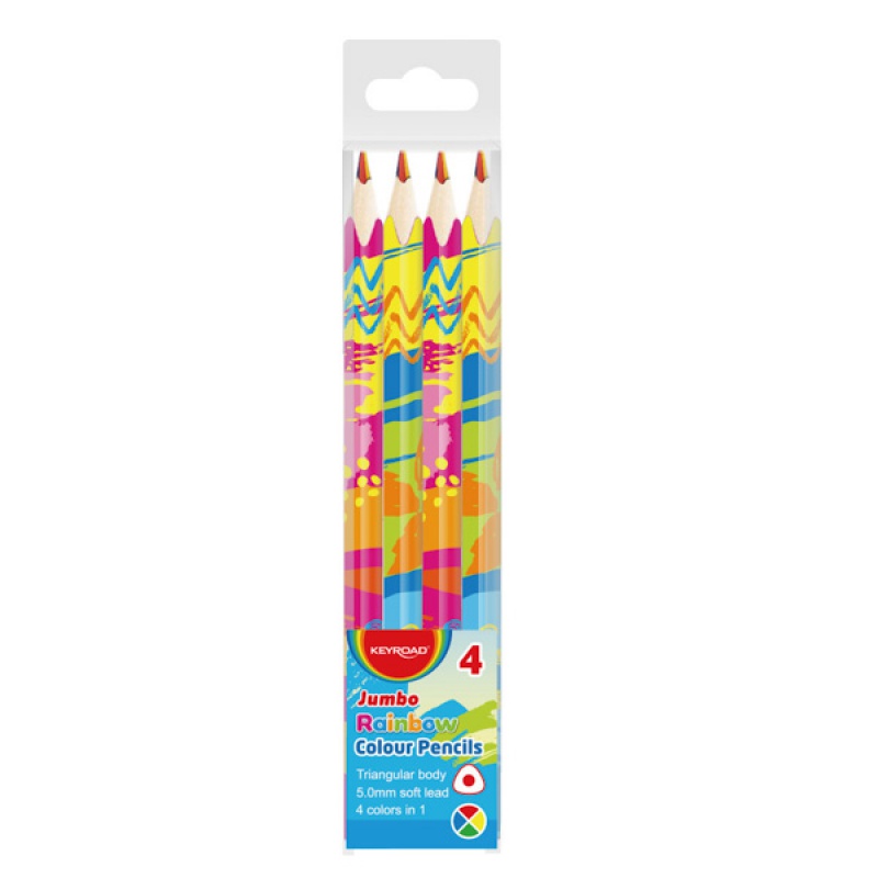 Kredki ołówkowe KEYROAD Jumbo, tęczowe, trójkątne, 4szt., zawieszka, mix kolorów
