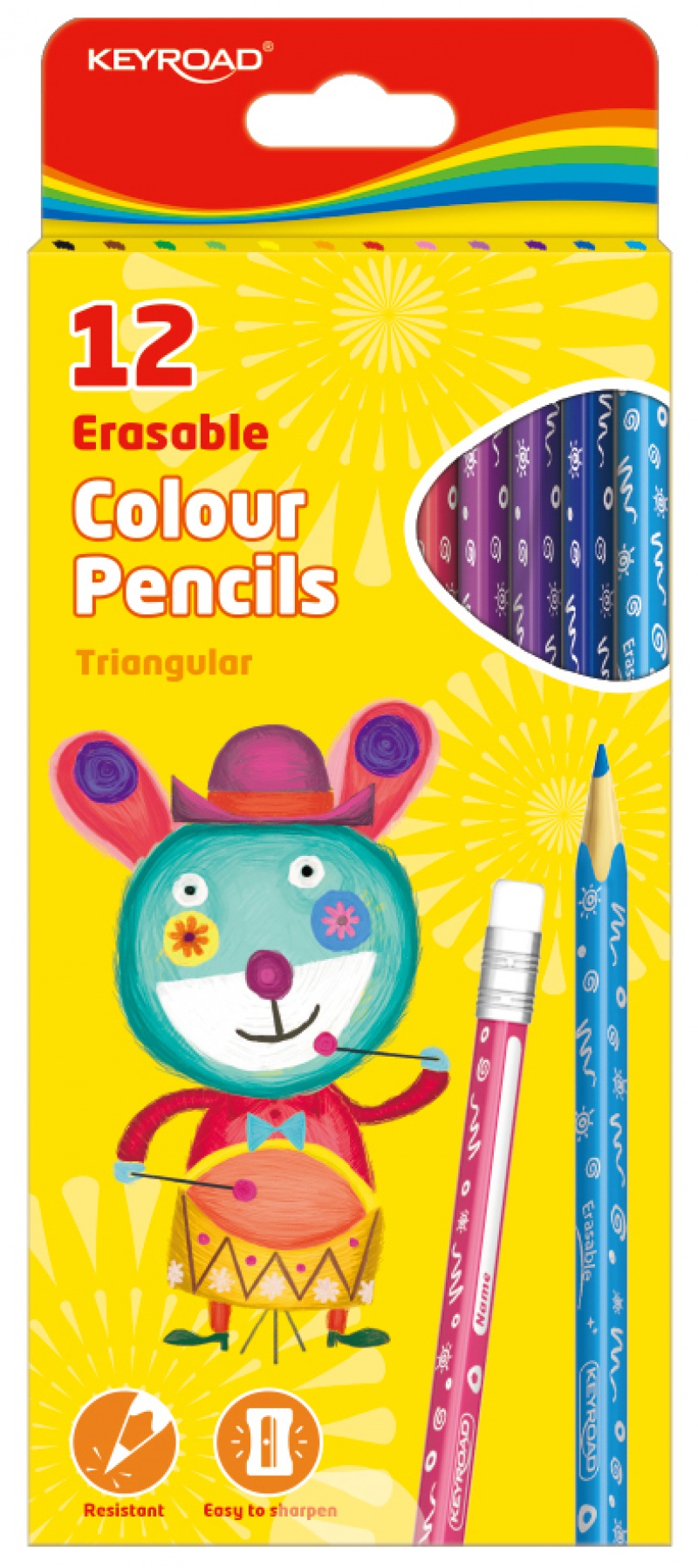 Kredki ołówkowe KEYROAD, trójkątne, z gumką, 12szt., mix kolorów