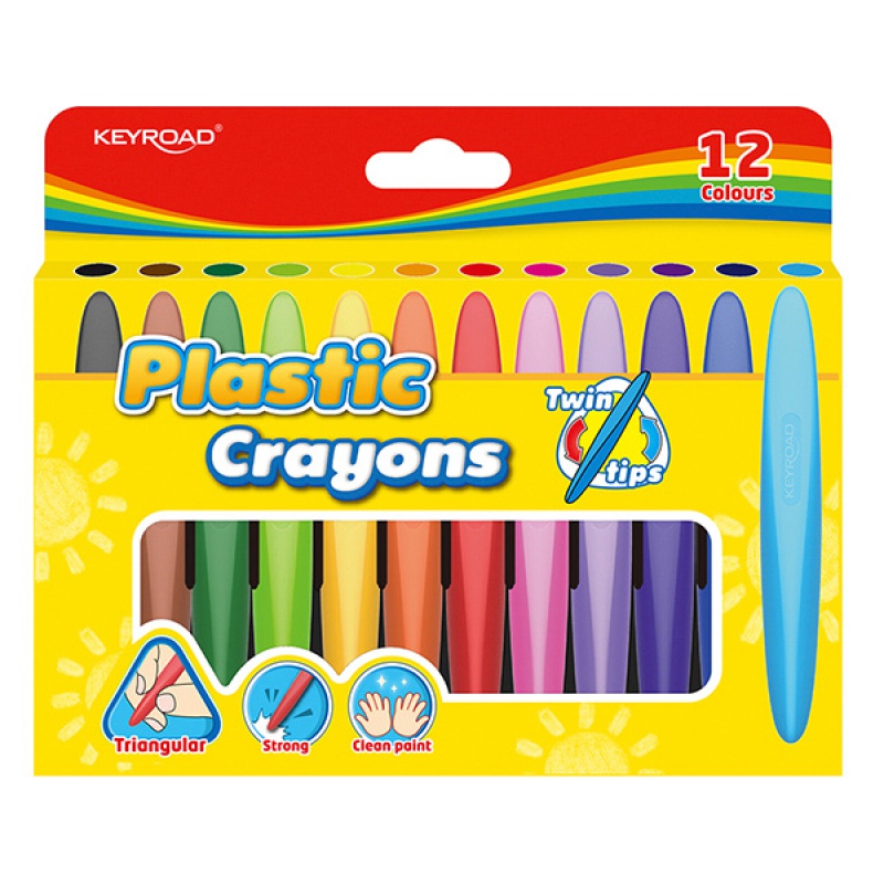 Kredki woskowe KEYROAD Twin Tips, 12szt., trójkątne, zawieszka, mix kolorów
