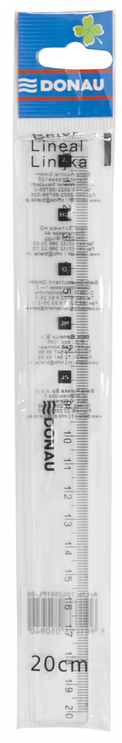 Linijka DONAU, 20cm, zawieszka, transparentna