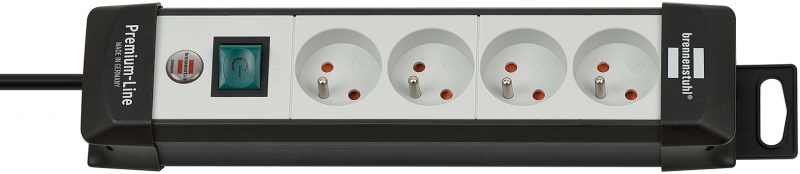 Listwa zasilająca BRENNENSTUHL Premium, 4 gniazd, zaczep, 1,8m, z wył., czarna