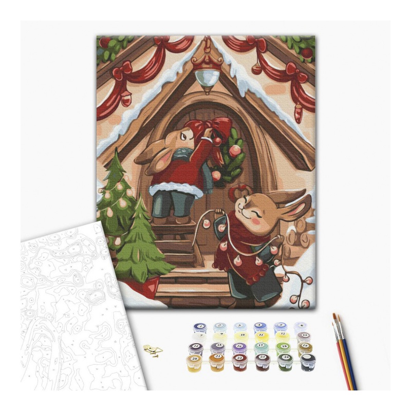 Malowanie po numerach BRUSHME, 30×40 cm, świąteczne króliczki, 1 szt.