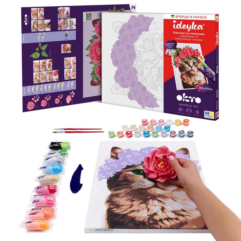 Malowanie po numerach IDEYKA&OCTO, 30x40cm, z glinką, elegancka kotka, 1 szt.