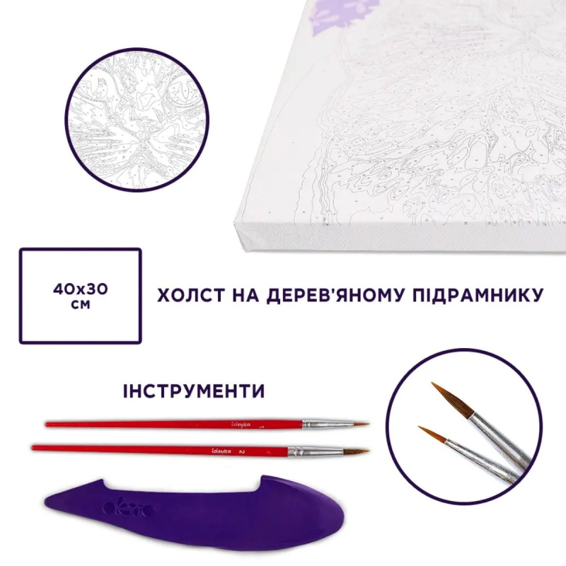 zestaw kreatywny z atrakcyjnym wzorem na płótnie zawiera wszystko czego potrzebujesz, aby stworzyć gotowy obraz: