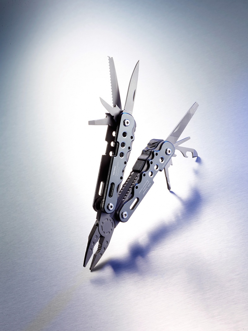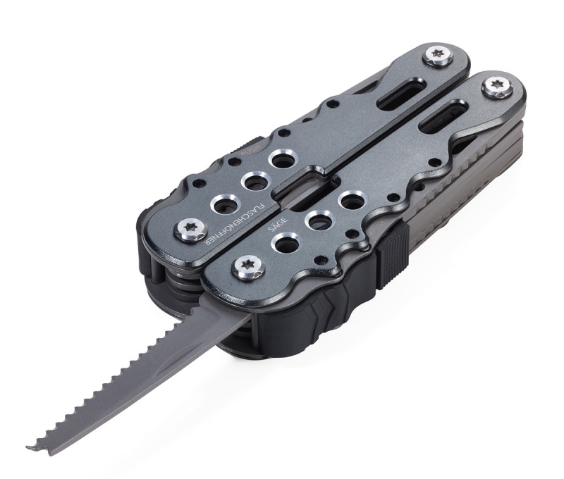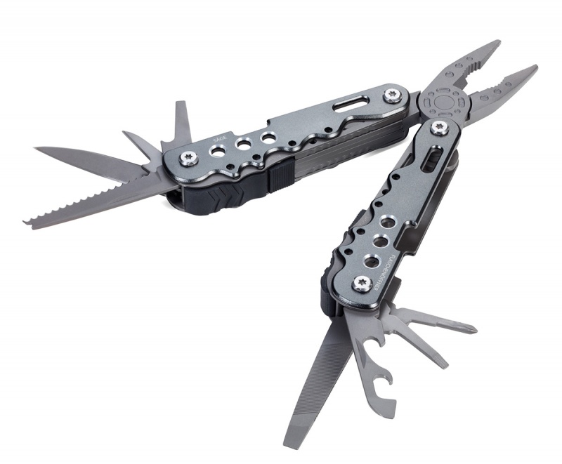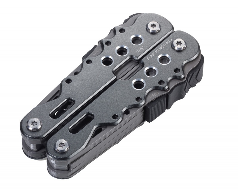 narzędzie Arbaitsgerat z 10 funkcjami: szczypce, nóż, piła, otwieracz do butelek, otwieracz do puszek, śrubokręty płaskie (3 rozmiary), śrubokręt krzyżakowy, szydło, pilnik do drewna i metalu, obcinacz boczny