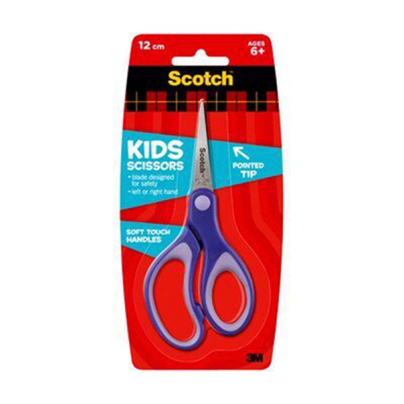 szkolne nożyczki dla dziecka od marki Scotch™ z ergonomicznym uchwytem dla małych rączek i spiczastym ostrzem dla precyzyjnego wycinania