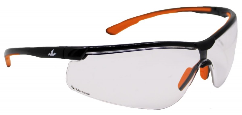 Okulary ochronne MCR Marazion, bezbarwne soczewki UV, czarno-pomarańczowe oprawki