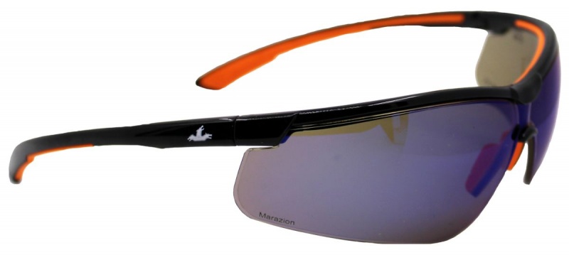 Okulary ochronne MCR Marazion, niebieskie lustrzane soczewki, czarno-pomarańczowe oprawki