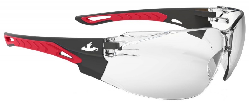 Okulary ochronne MCR Sennen, bezbarwne soczewki UV, czarno-czerwone oprawki