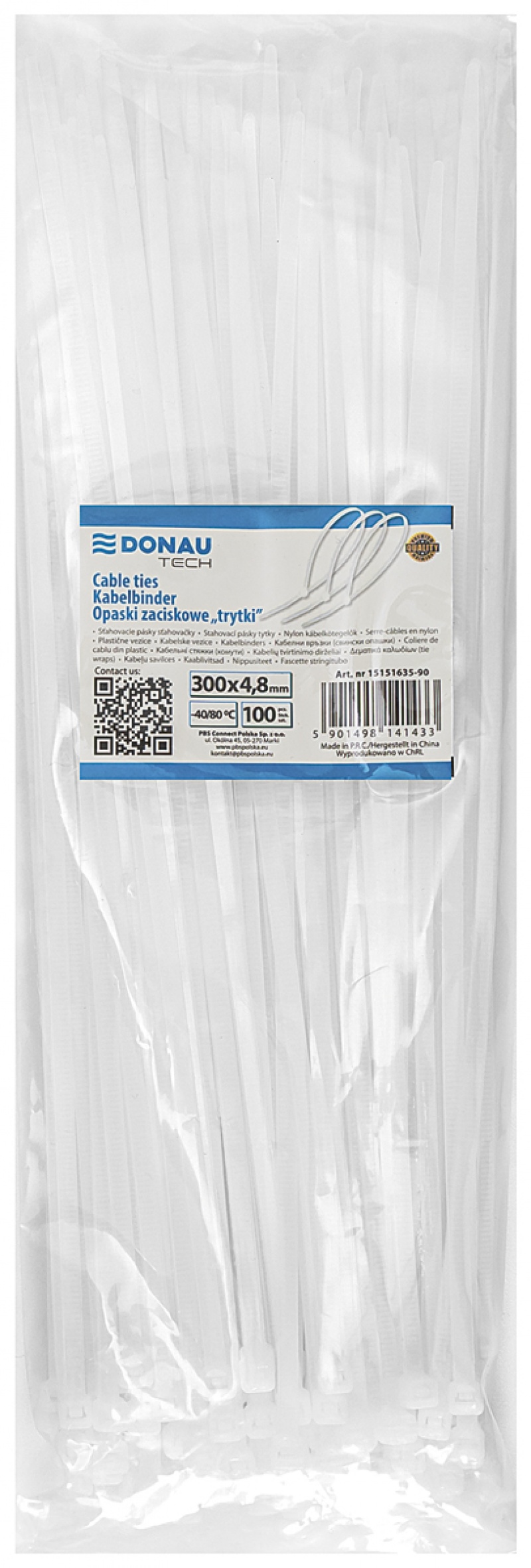 Opaski zaciskowe/trytytki DONAU TECH, 300×4,8mm, 100szt., temp. -40/80, transparentne