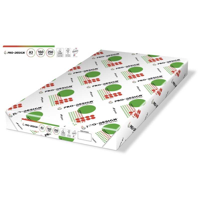 Papier ksero PRO-DESIGN FSC, satynowany, klasa A++, A3, 168CIE, 160gsm, 250 ark.