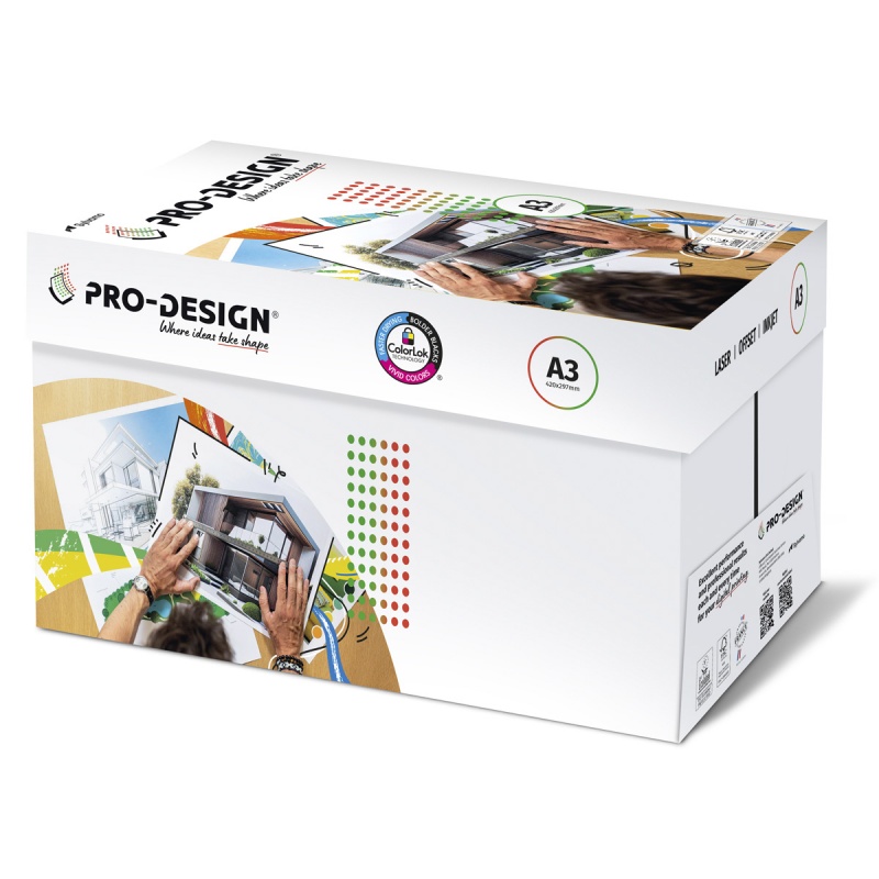 PRO-DESIGN to papier satynowany o wysokiej białości i doskonale gładkiej powierzchni, dedykowany do kolorowego druku cyfrowego. Gwarantowana wysoka jakość i profesjonalne wydruki. Testowany na drukarkach głównych producentów cyfrowych maszyn drukarskich. Wyprodukowany zgodnie z najwyższymi standardami ochrony środowiska.