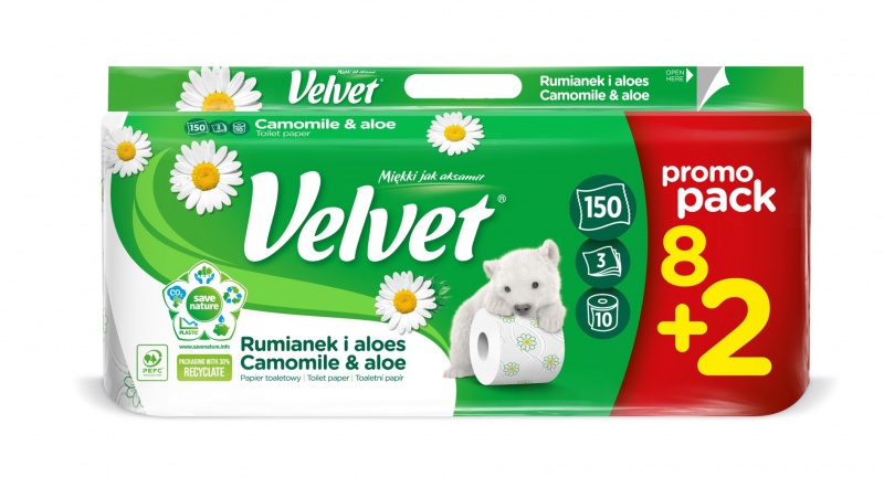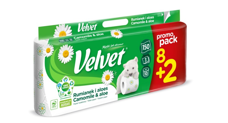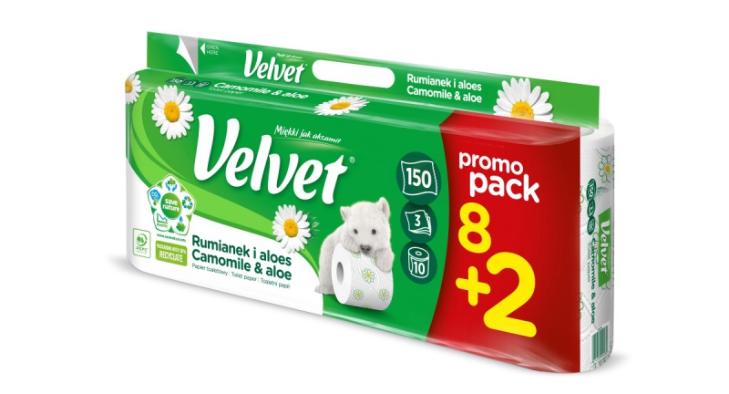 Papier Toaletowy celulozowy VELVET Rumianek i Aloes, 3-warstwowy, 8+2szt., biały
