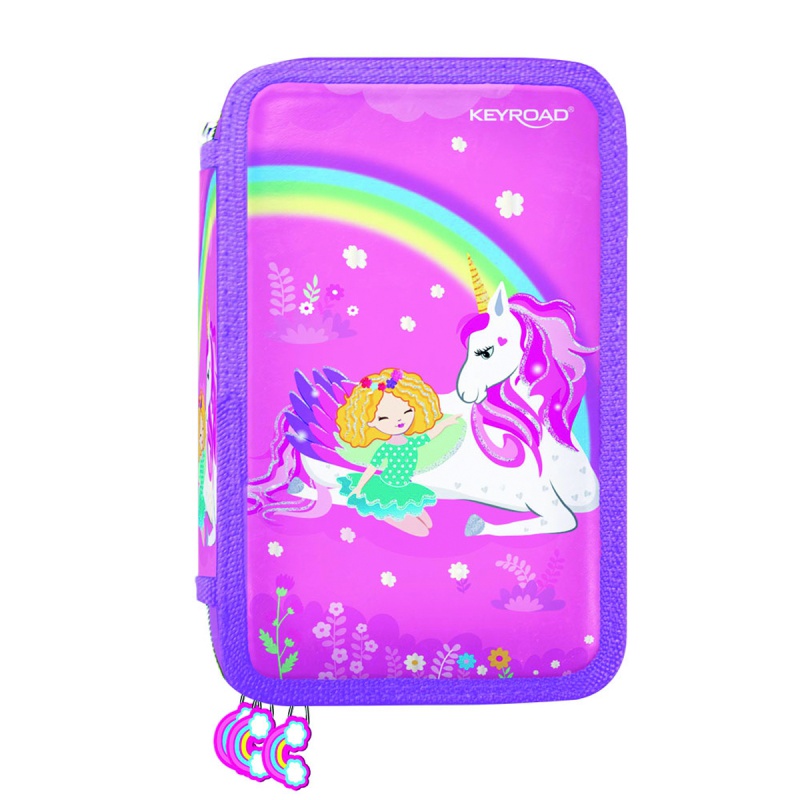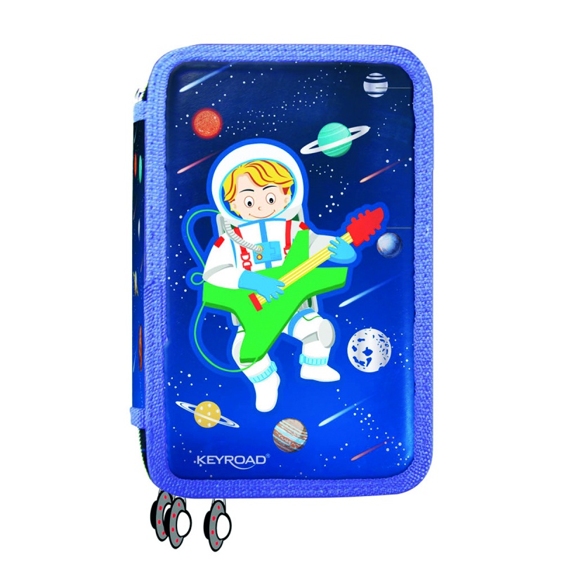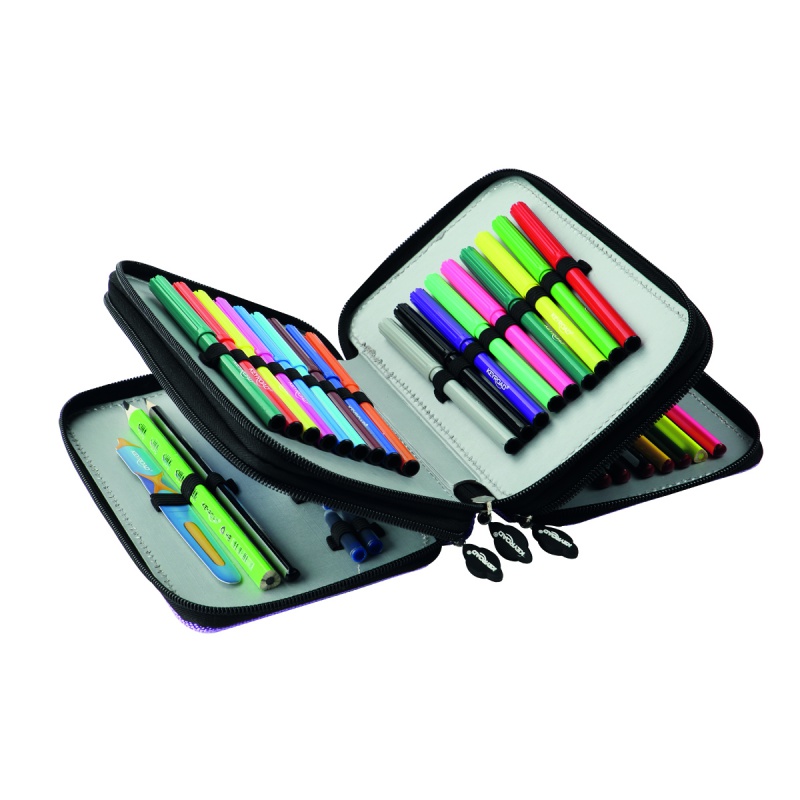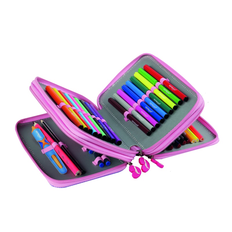 Piórnik KEYROAD, wyposażony, 3-komorowy, 52 elementy, 20,5×13,5×6 cm, mix kolorów