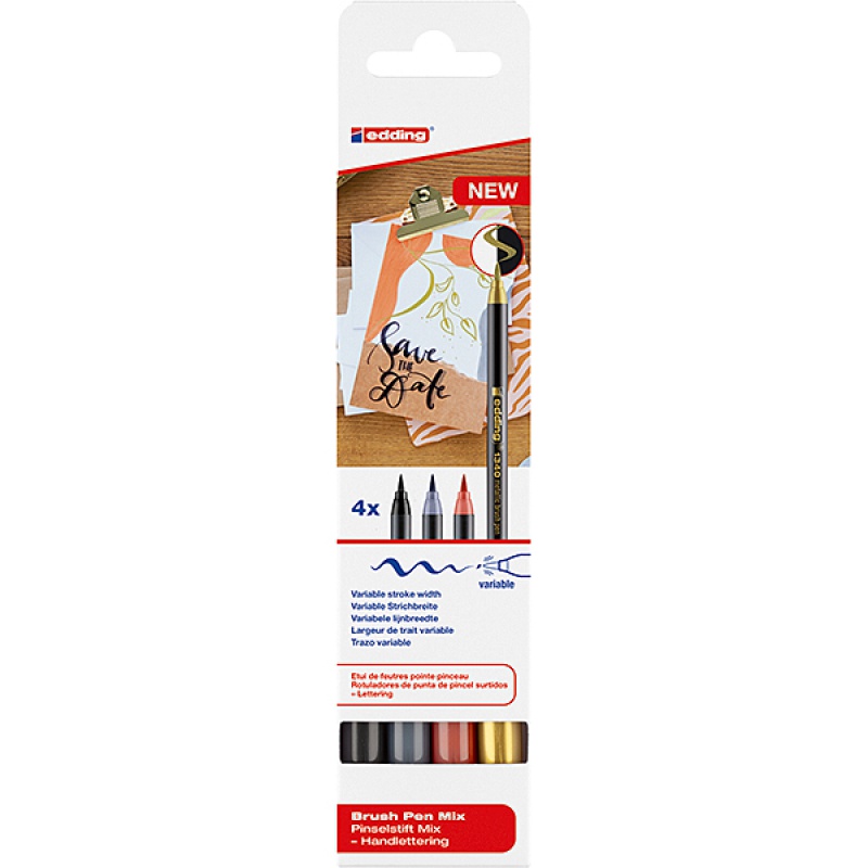Pisak z końcówką pędzelkową e-1340 EDDING, 4 szt., mix kolorów metalicznych