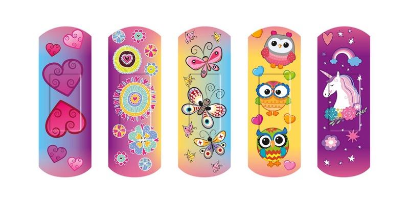 przepuszczające powietrze plastry dziecięce o kolorowych wzorach