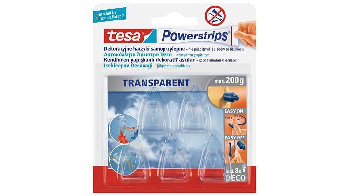Wygodna alternatywa dla wkrętów i gwoździ._Solidne mocowanie przedmiotów do większości powierzchni._Nie pozostawiają śladów/nie niszczą powierzchni po usunięciu._Plastry utrzymują ciężar do 200g na gładkich powierzchniach.