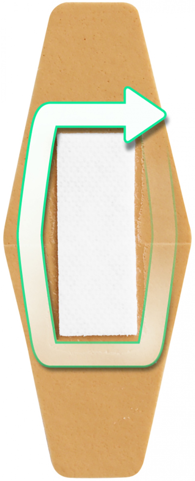innowacyjny kształt zaprojektowany w celu lepszego uszczelniania opatrunku i zabezpieczenia rany (ochrona 360°)