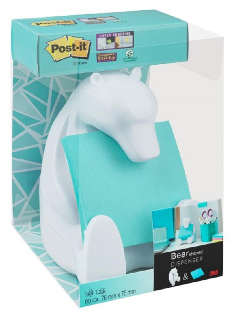 Podajnik do karteczek samoprzylepnych POST-IT® Miś (Bear-330), biały, w zestawie 1 bloczek Super Sticky Z-Notes