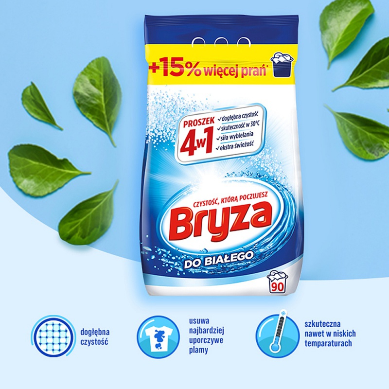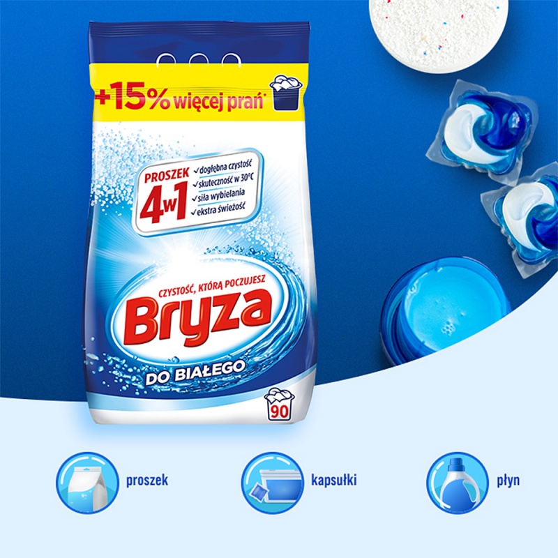 Proszek do prania BRYZA, 4w1 biały 5,85 kg, 90 prań