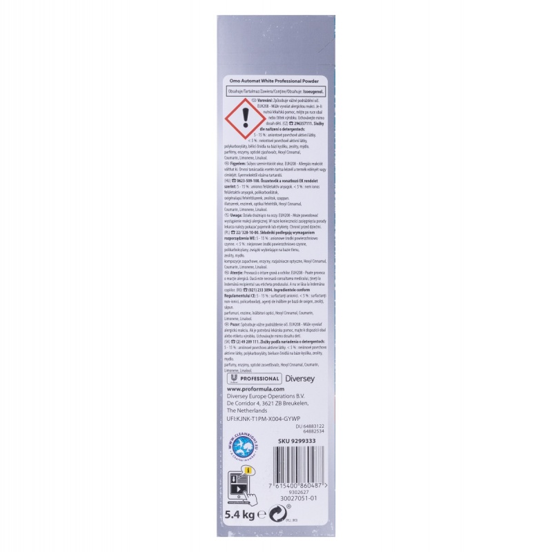 Proszek do prania OMO Diversey, 108 prań, biel, 5,4kg