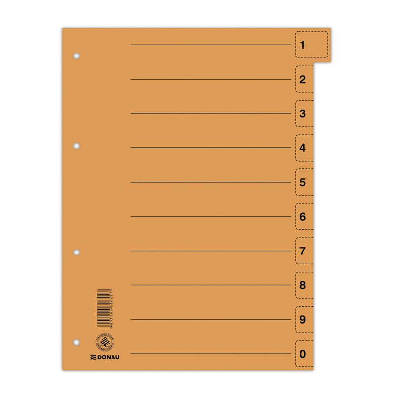 Przekładka DONAU, karton, A4, 235x300mm, 0-9, 1 karta z perforacją, pomarańczowa