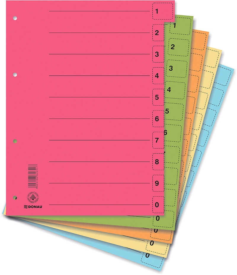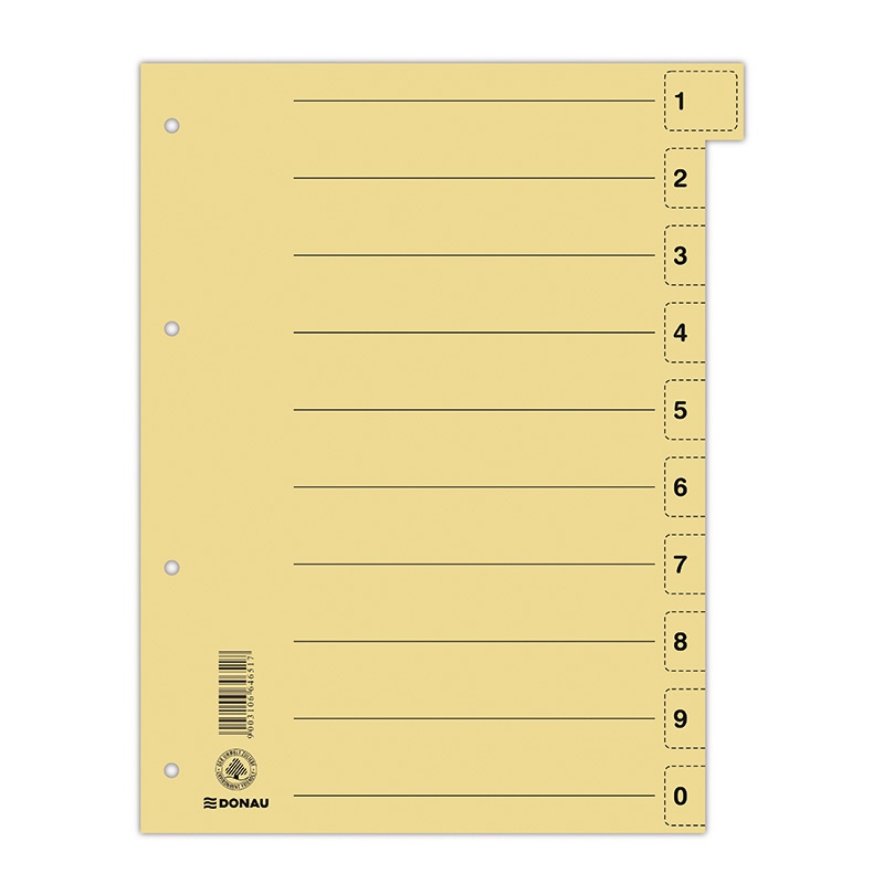 Przekładka DONAU, karton, A4, 235x300mm, 0-9, 1 karta z perforacją, żółta