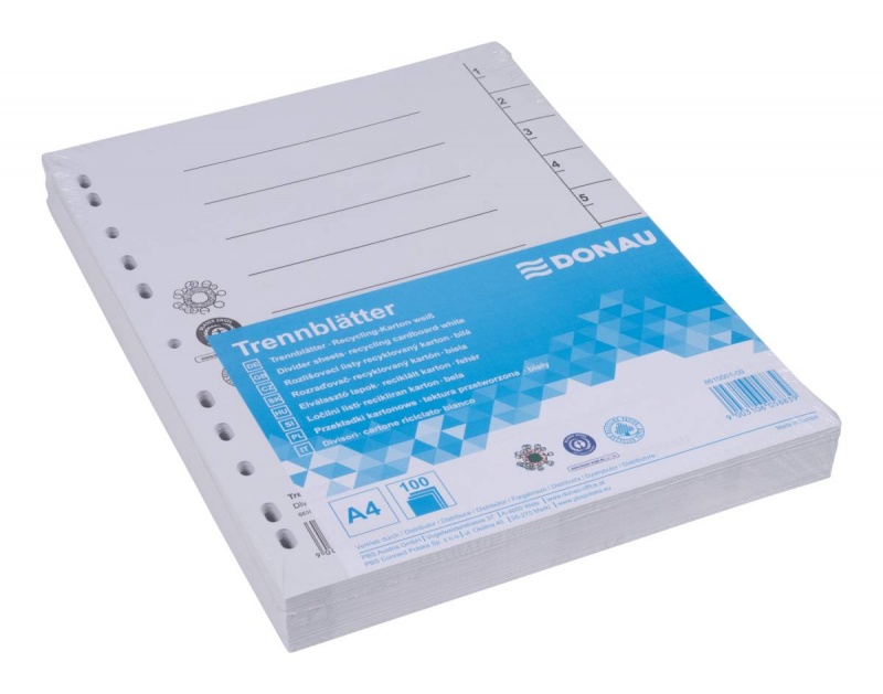 Przekładka DONAU, karton, A4, 235x300mm, 1-10, 1 karta, biała