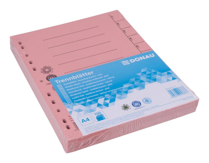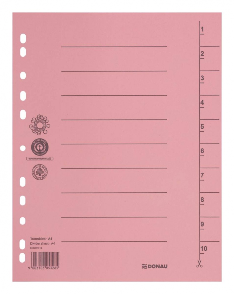 Przekładka DONAU, karton, A4, 235x300mm, 1-10, 1 karta, jasnoróżowa