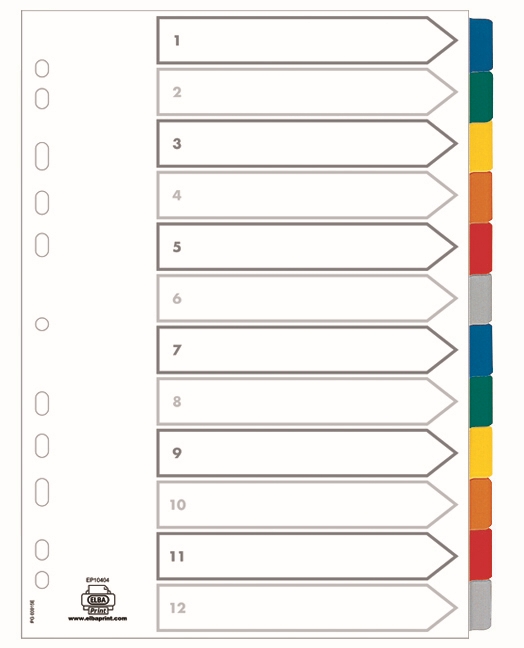 Przekładki ELBA MYLAR A4+ kartonowe kolorowe zakładki 1-12