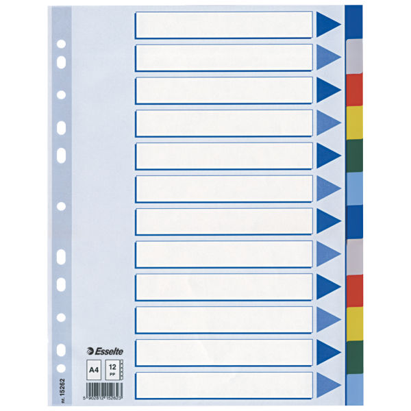Przekładki ESSELTE plastik PP A4 12 kolorów