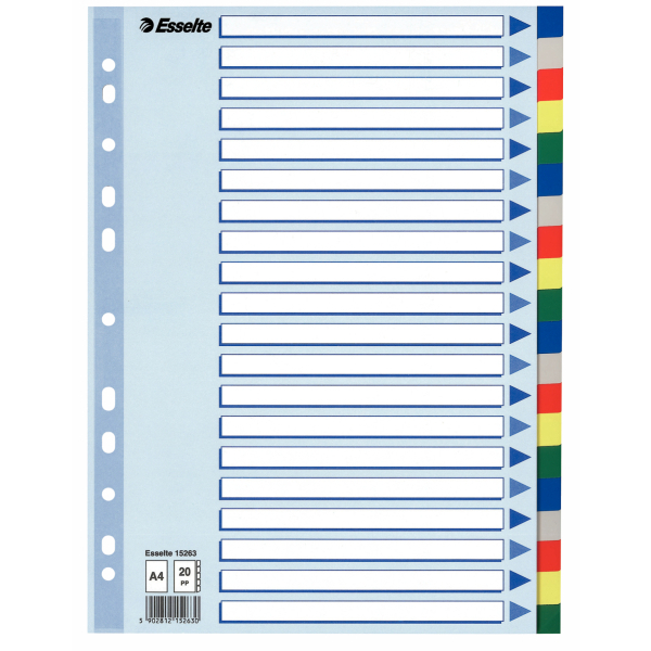 Przekładki ESSELTE plastik PP A4 20 kolorów