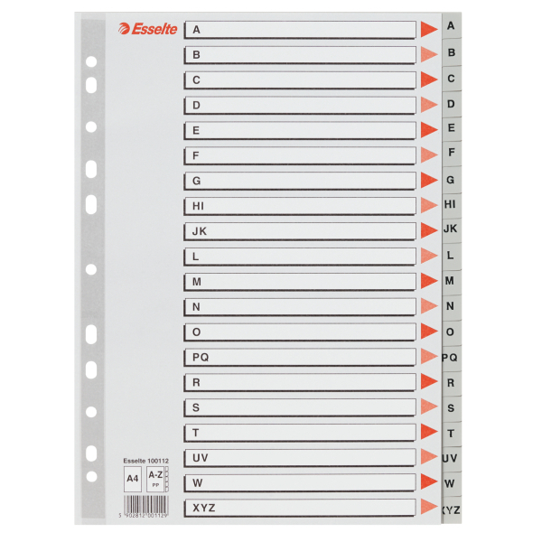 Przekładki ESSELTE plastik PP A4 szare A-Z