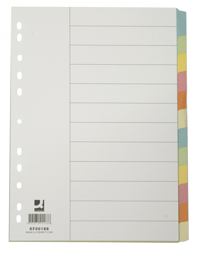 Przekładki Q-CONNECT, karton, A4, 223x297mm, 12 kart, mix kolorów