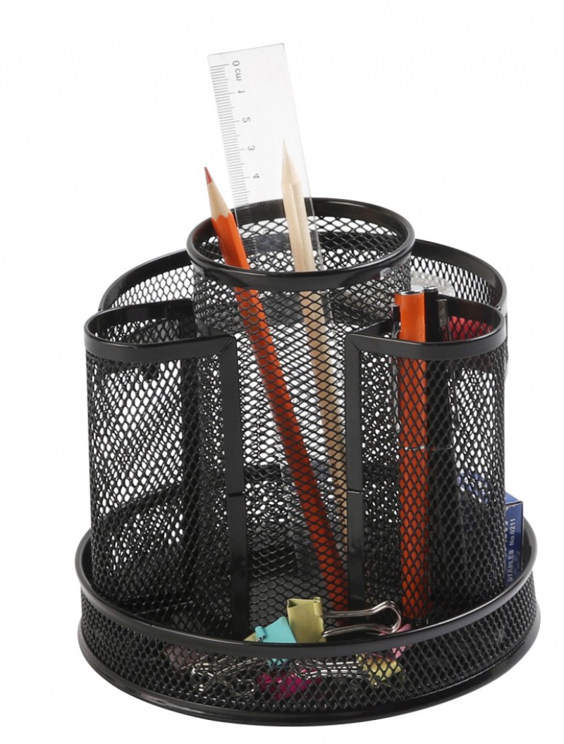 przybornik na biurko, wykonany z metalowej siateczki powlekanej lakierem