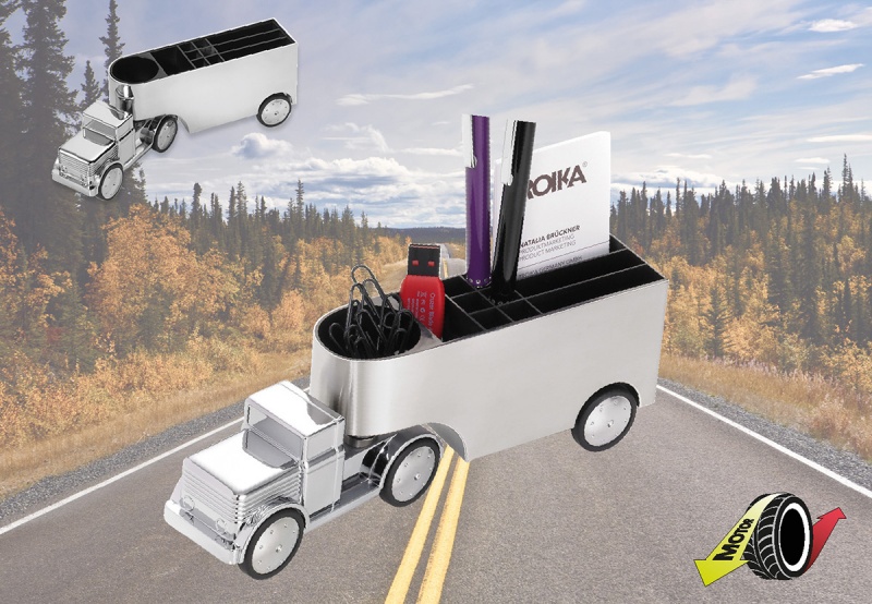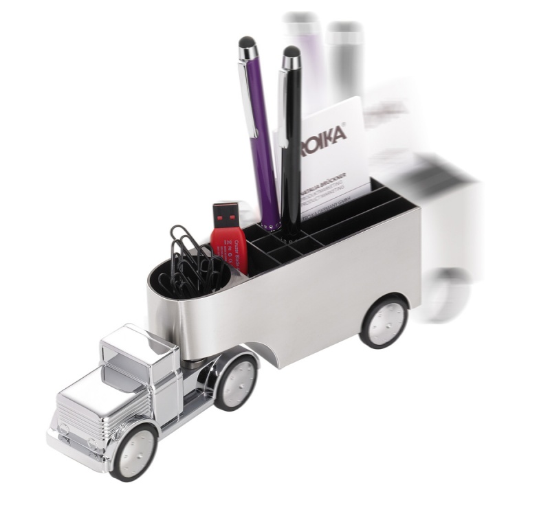 Przybornik na biurko TROIKA Office Trucker, ciężarówka, chromowany, szary