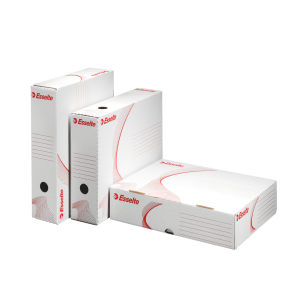 Pudło na dokumenty otwierane z szerszej strony Esselte _- Otwarcie z szerszej strony znacznie ułatwia załadunek i archiwizowanie dokumentów._- Format A4 + (poszerzony. możliwość przechowywania dokumentów w koszulkach czy razem z przekładkami)_- Możliwość ustawiania w pozycji poziomej i pionowej_- Mocny. wysokiej jakości karton. grubość: 390 gsm_- Wymiary (dł.x sz.x wys.): 329x255x80_- jednostka sprzedazy 1 sztuka