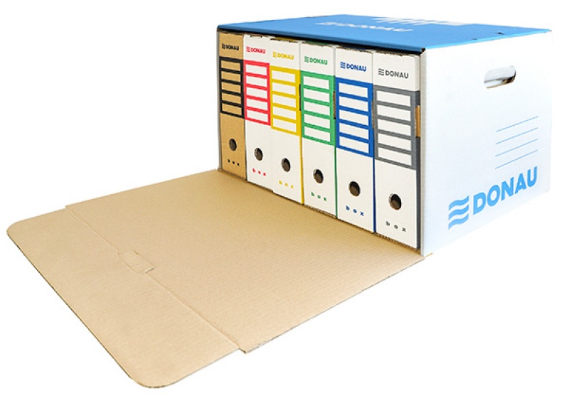 Pudło archiwizacyjne wzmocnione DONAU, karton, zbiorcze, przednie, niebieskie
