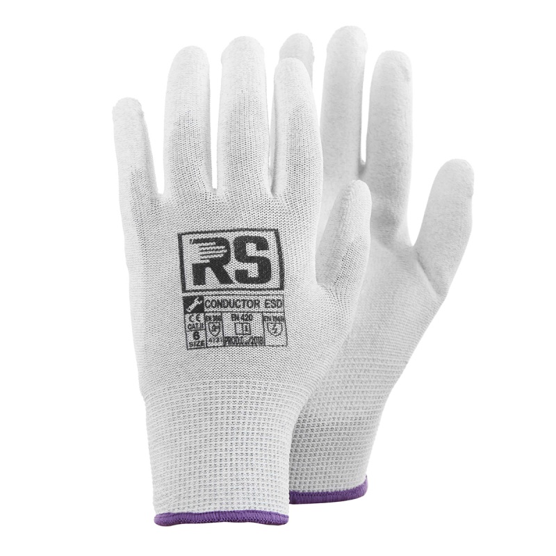 Rękawice ESD RS CONDUCTOR, dziane, rozm.7, szare
