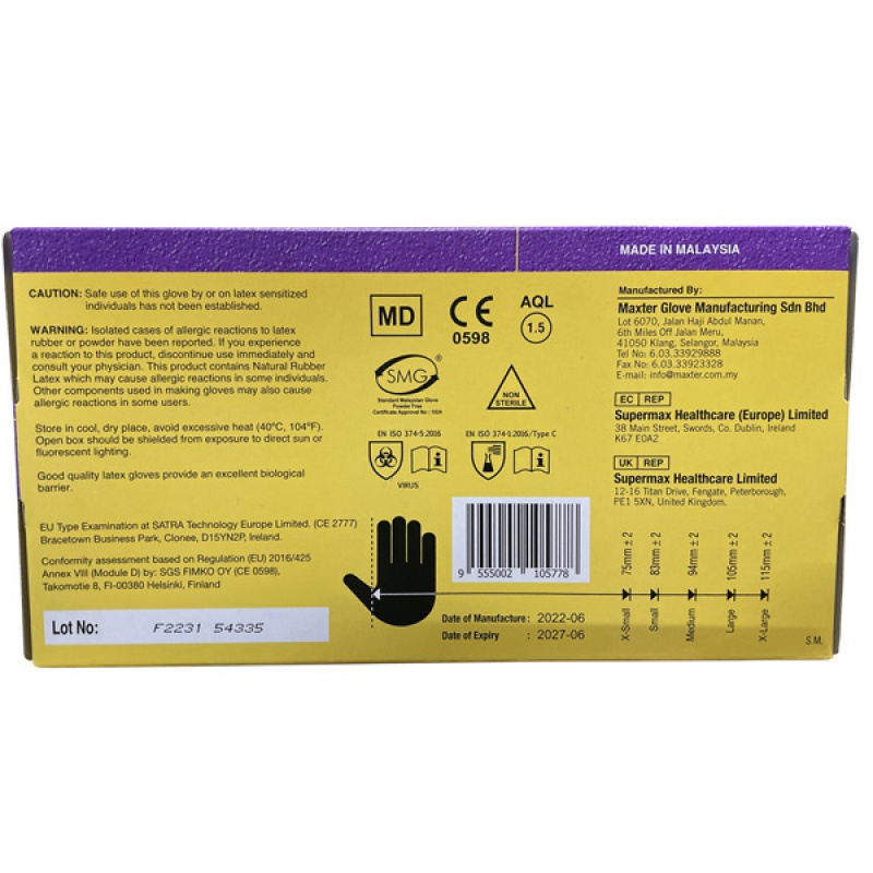 Rękawice lateksowe bezpudrowe MAXTER, 100 szt., S