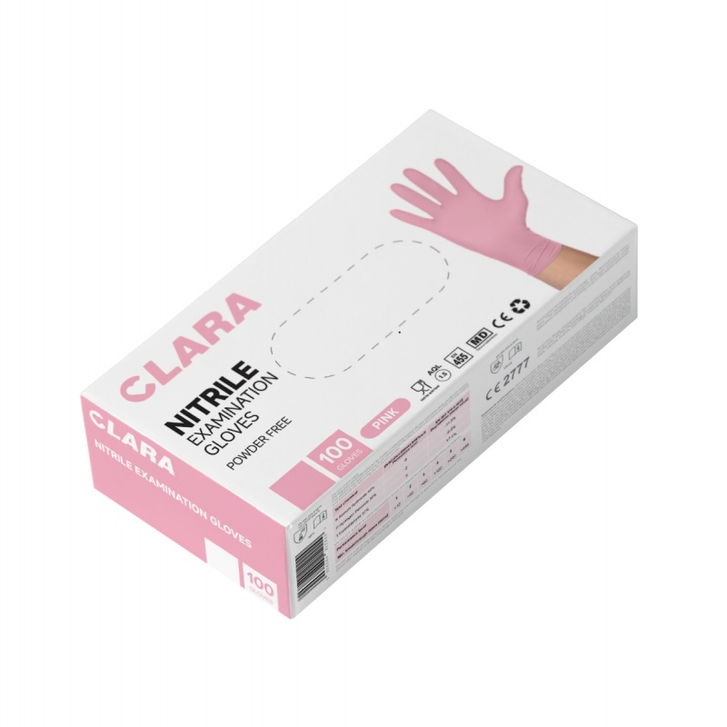 Rękawice nitrylowe bezpudrowe CLARA, 100 szt., rozmiar L, różowe