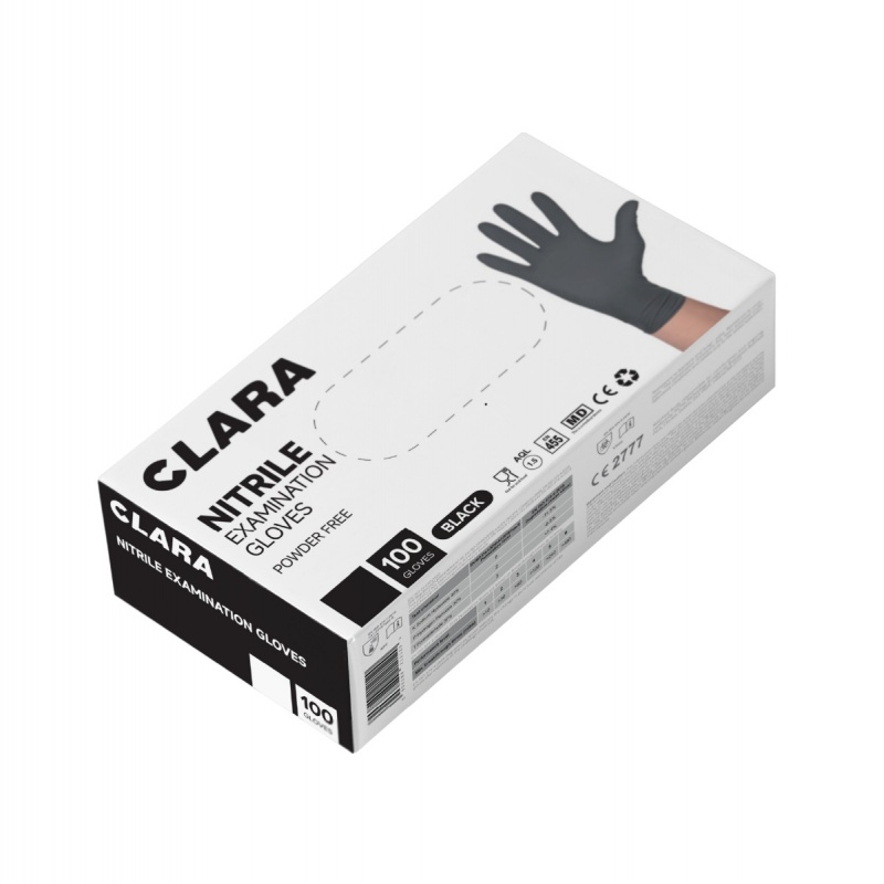 Rękawice nitrylowe bezpudrowe CLARA, 100 szt., rozmiar XL, czarne