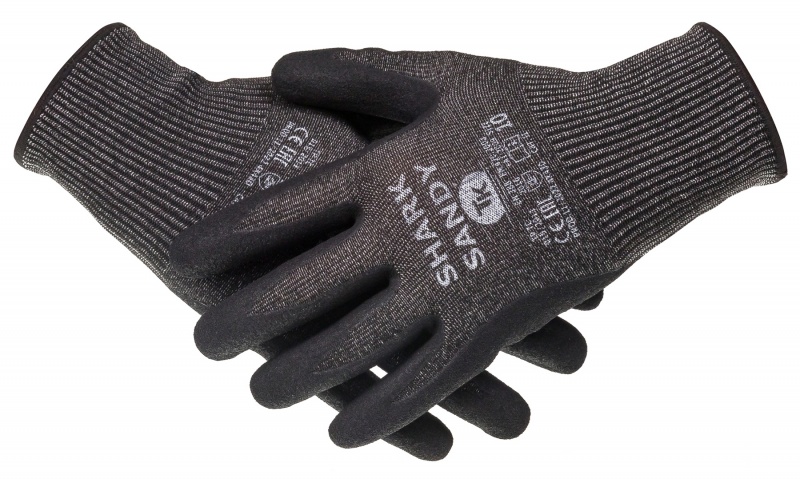 SHARK SANDY – rękawica antyprzecięciowa przeznaczona do prac wymagających zwiększonej chwytności, szczególnie w środowisku zaolejonym. Wysoki poziom ochrony przed przecięciem – D