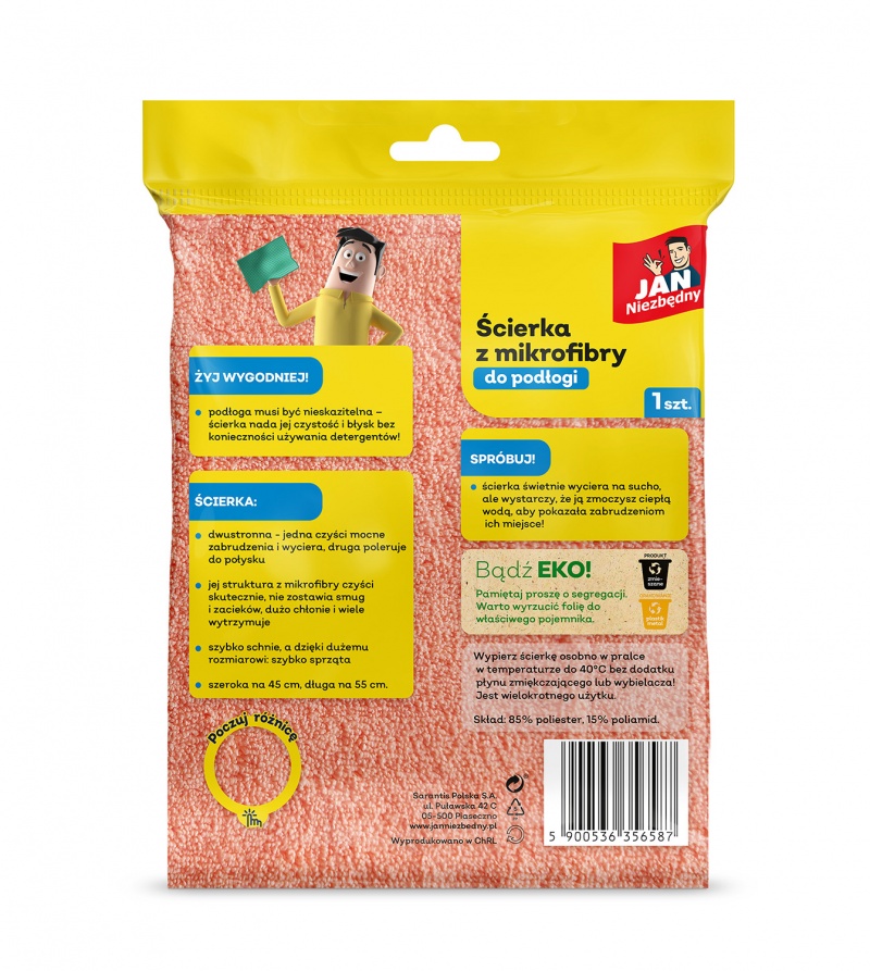 Ścierka z mikrofibry JAN NIEZBĘDNY, do podłogi, dwustronna, 1 szt., pomarańczowa
