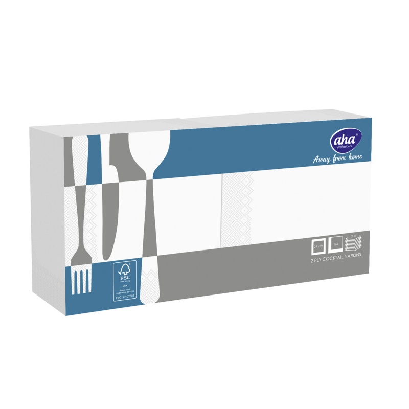Serwetki AFH AHA, 2-warstwowe, składanie 1/4, 24x24cm, 200 szt., białe