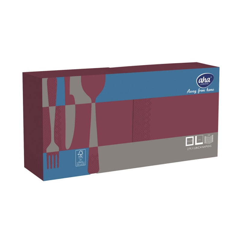 Serwetki AFH AHA, 2-warstwowe, składanie 1/4, 33x33cm, 250 szt., bordowe